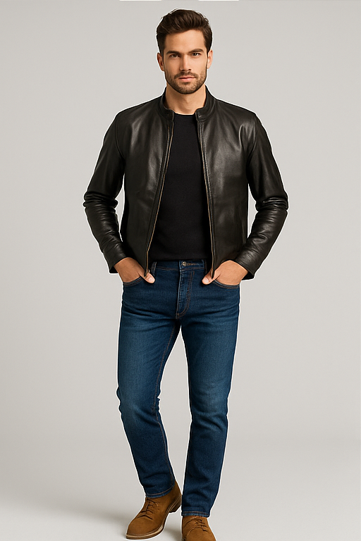 Men’s Faded Blue Denim Jeans – Distressed Thigh & Knee Finish